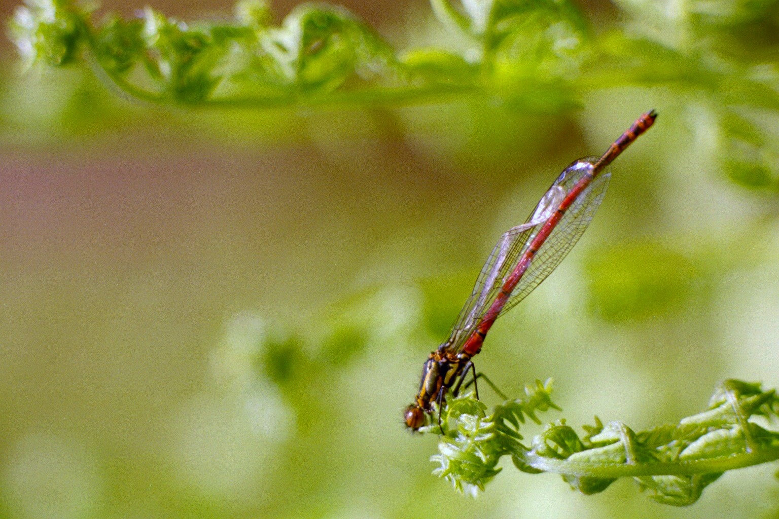 Libelle auf Farn (Frühe Adonislibelle ♀)