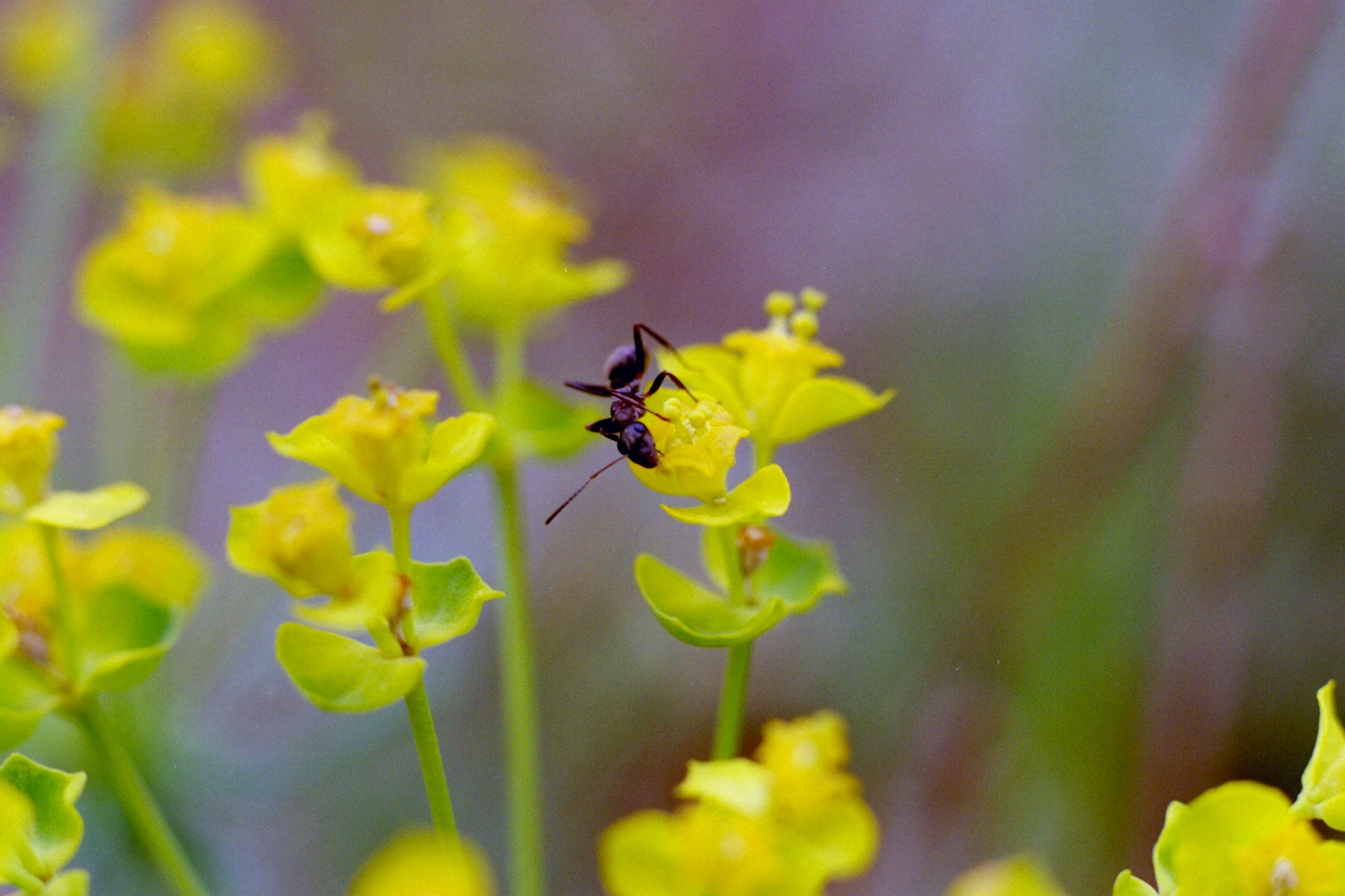Serie:Ameise auf Zypressenwolfsmilch-Blüte